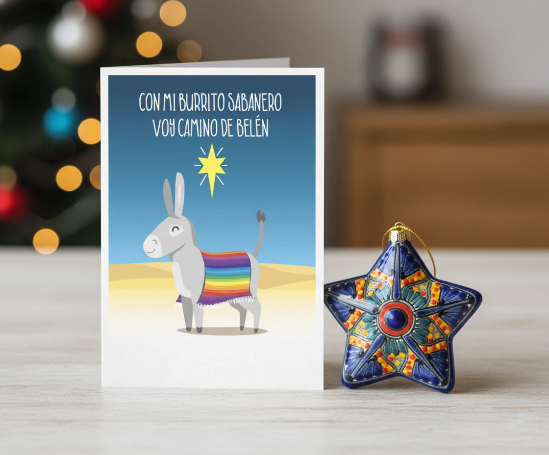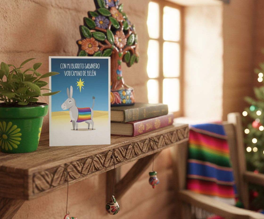 You know it’s Christmas when you hear la canción de El Burrito Sabanero. “Tuki tuki tukituki …” this donkey is on a long journey to Bethlehem. Bring a smile to someone’s face this holiday with this cute burrito que va camino a Belén.