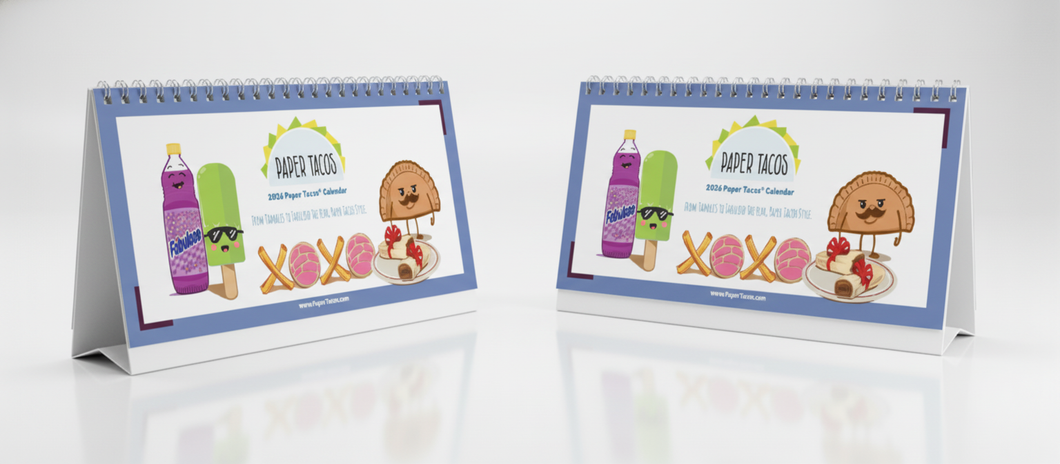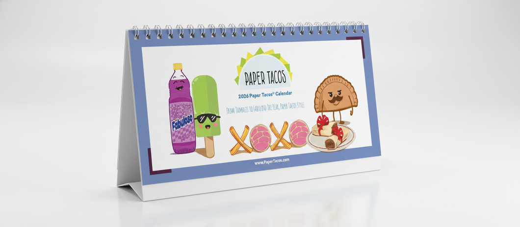 Bring 12 months of alegría, Spanglish, and cultura straight to your desk. Each month features a Paper Tacos® illustration, from conchas to tamales, carne asada smoke to Fabuloso. Designed to spark a sonrisa the moment you flip the page.